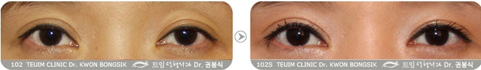 双眼皮手术后因为对手术效果不满意而来到我院进行无痕开内眼角+双眼皮前部线条矫正术的案例 双眼皮越宽、越接受欧式双眼皮线条的手术方案蒙古褶的重要性也越明显。 大部分韩国人有中等程度以上的蒙古褶,想要获得稳定的双眼皮线条,可以说通过开内眼角手术改善蒙古褶是必需的步骤。开内眼角手术可以在一定程度上增加眼睛的长度,从双眼皮线条的完成度的角度来看,说是双眼皮手术一部分也不过分。更严谨地说,无痕开内眼角手术和双眼皮手术是东方人眼部整形中不可分割的一部分。在德仁整形外科,施行的将无痕开内眼角手术与双眼皮手术的有机的进行复合的构造性双眼皮手术(Structural double eyelid surgery),可以获得完成度的自然双眼皮与欧式双眼皮。为了获得效果自然且完成度高的欧式双眼皮,在医学上需要进行适当的开内眼角效果。