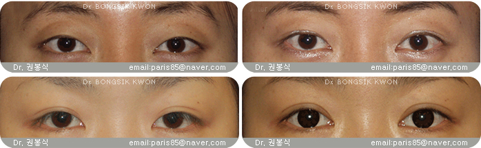 These are cases where the upper pupils are covered by the eyelid skin drooping. It should be separated from true ptosis or mixed type by accurate evaluation. In cases of much skin drooping(true epiblepharon), there tend to be more than mild ptosis.