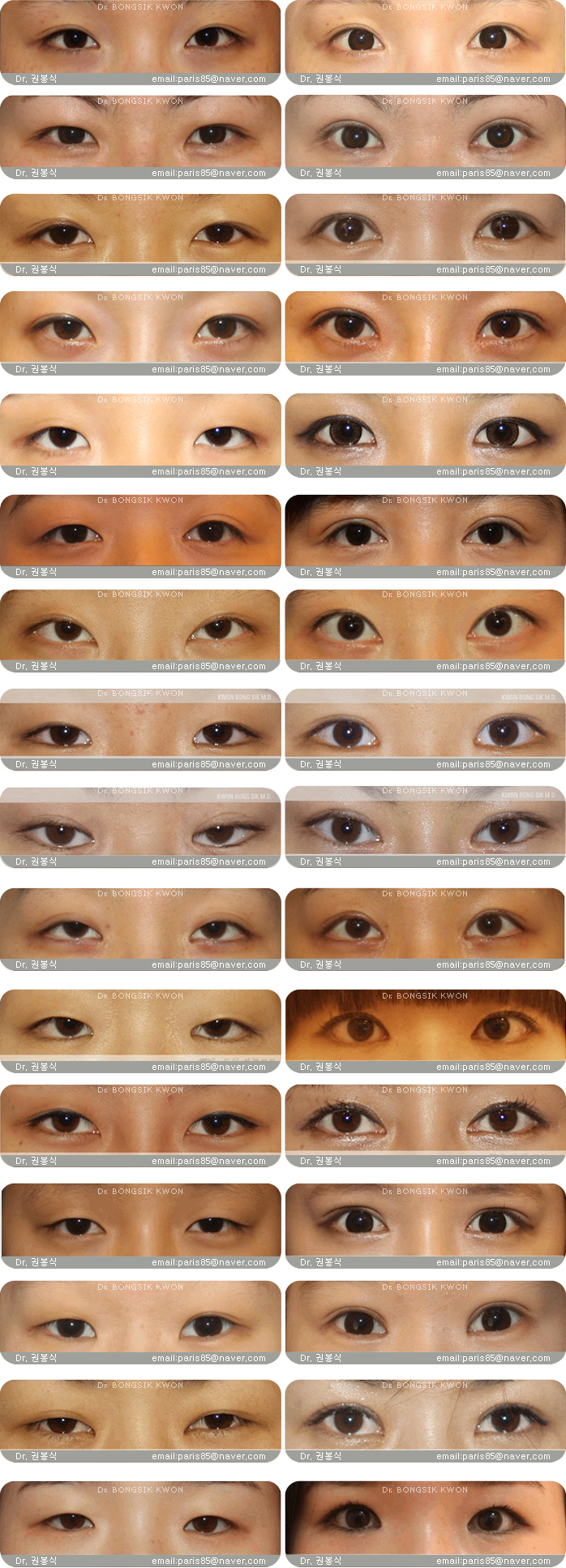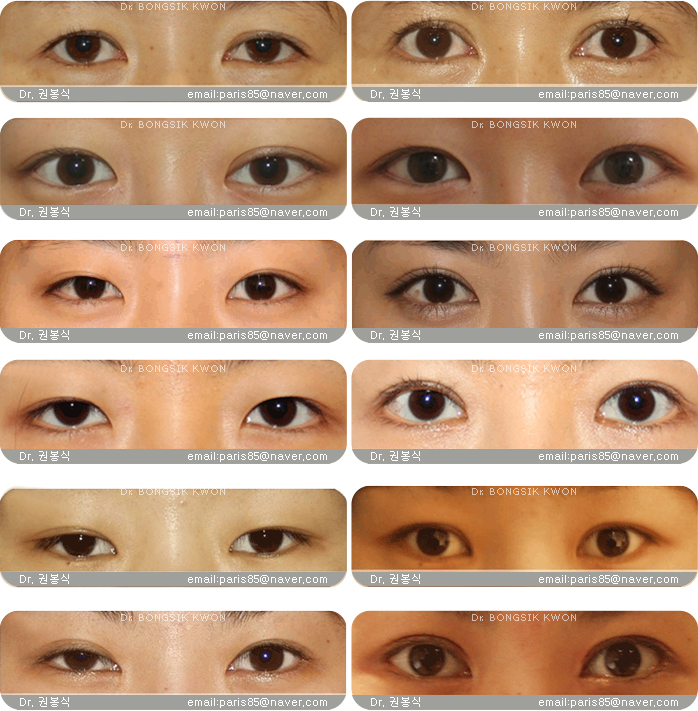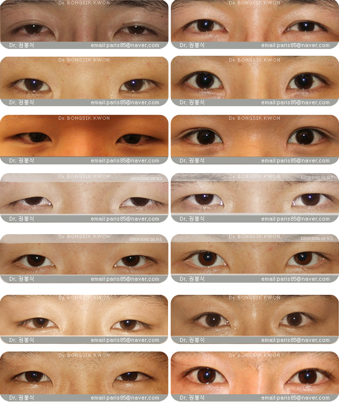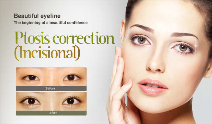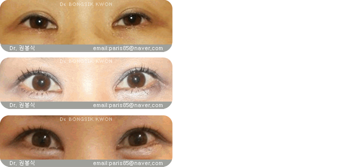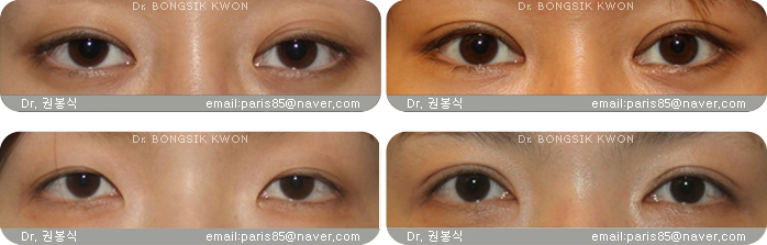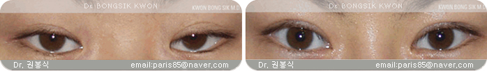 In a case both eyes are ptosis, it is difficult to correct as symmetry than the case only one is ptosis. After correcting severe ptosis, eyes does not be closed immediately after surgery, it can result in sleeping with opened eyes, but it is improved as times pass. When one does not want to make a double eyelid, it is possible to correct only ptosis, but very small hidden double eyelid will be made.