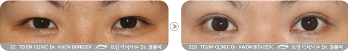 双眼皮手术后因为对手术效果不满意而来到我院进行无痕开内眼角+双眼皮前部线条矫正术的案例 双眼皮越宽、越接受欧式双眼皮线条的手术方案蒙古褶的重要性也越明显。 大部分韩国人有中等程度以上的蒙古褶,想要获得稳定的双眼皮线条,可以说通过开内眼角手术改善蒙古褶是必需的步骤。开内眼角手术可以在一定程度上增加眼睛的长度,从双眼皮线条的完成度的角度来看,说是双眼皮手术一部分也不过分。更严谨地说,无痕开内眼角手术和双眼皮手术是东方人眼部整形中不可分割的一部分。在德仁整形外科,施行的将无痕开内眼角手术与双眼皮手术的有机的进行复合的构造性双眼皮手术(Structural double eyelid surgery),可以获得完成度的自然双眼皮与欧式双眼皮。为了获得效果自然且完成度高的欧式双眼皮,在医学上需要进行适当的开内眼角效果。