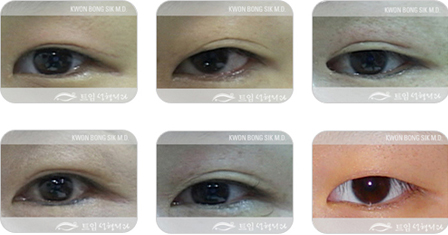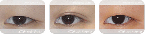 比预想的双眼皮宽时,将粘连的双眼皮线条的分离后向下调整再固定,为了防止发生再次粘连,可以采用通过筋膜再排列与脂肪填充等手段。