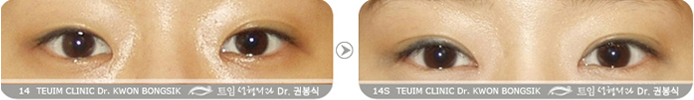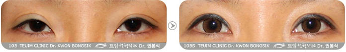 例)左图是通过埋线法双眼有皮做出的内双双眼皮线条,术后一段时间,一只眼睛的线条已经变窄并逐渐消失。 通过无痕开内眼角与埋线法双眼皮修复手术之后获得对称自然的双眼皮线条与明亮的眼神。